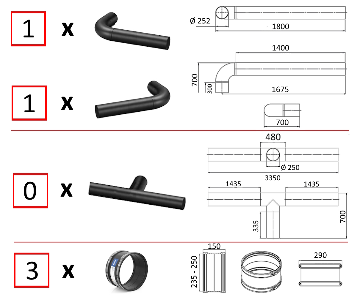 - 2 x PE-90° Bogen DN250 mit Rohrverlängerung